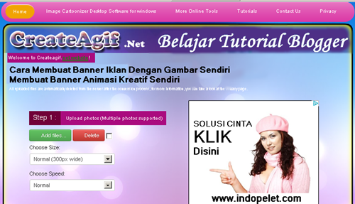 Membuat Banner Iklan Animasi atau Membuat Iklan Gambar tidaklah sulit. Sebenarnya cukuplah gampang, tinggal kita masuk ke situs atau web penyedia dan tinggal ikuti langkah-langkahnya upload gambar dan di kasih text kata-kata iklan yang kita kehendaki.